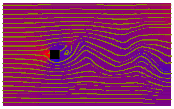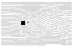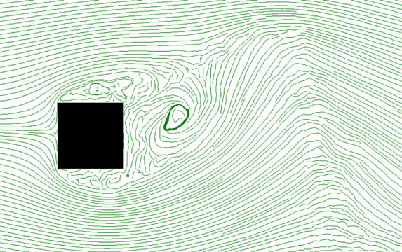 Textur Effekt ESS mit Tapering-Effekt und Druckverteilung Detailansicht der Verwirbelungen hinter dem Hindernis