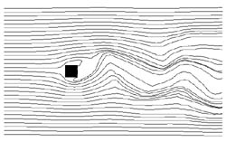 Slice of Direct Numerical Simulation (DNS) of a flow around a block