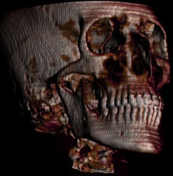The program takes a .dat file as an input. The settings for the transfer function including coloring and opacity can be stored and reload by a proprietary .trf file. The recalculated 3D image can be viewed interactively at low resolution in a separate window. After interactivity phase the image is rendered at high resolution. An orientation window is also available providing an overview of the scene and control of the incidence of light. The rendered image can be stored as a .bmp file. It is also possible to render a sequence of images witch are stored as a sequence of .bmp files. These files can be post processed in order to generate an animation.