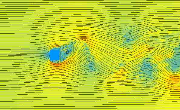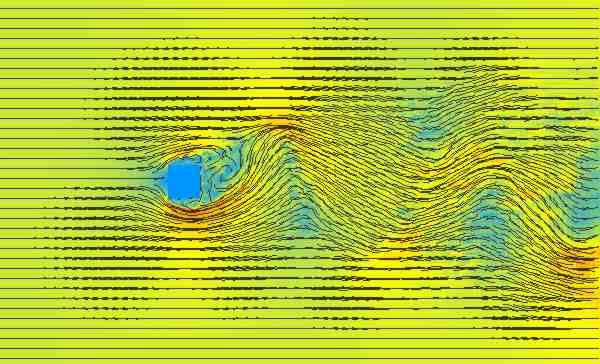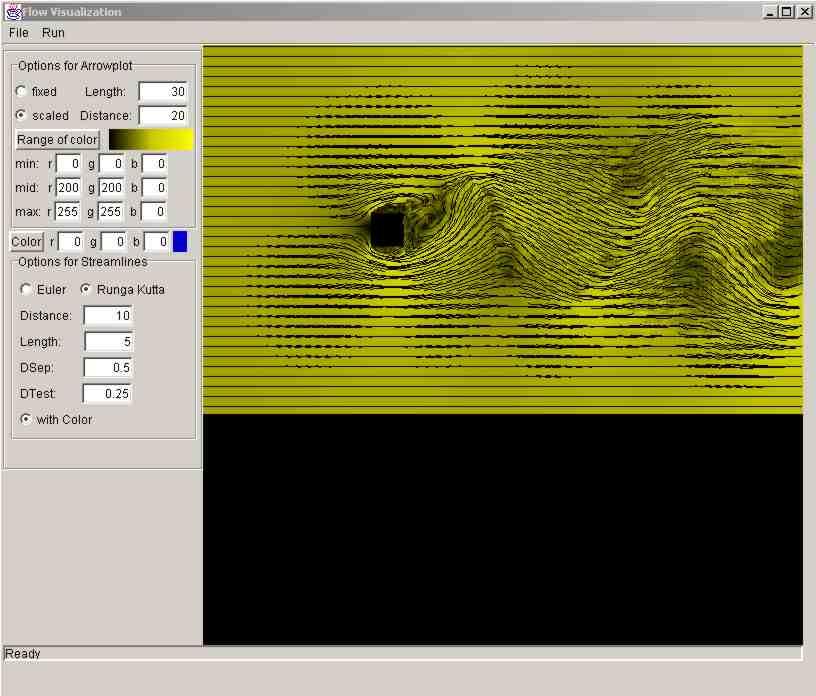 Flow ist ein Programm zur Visualisierung von 2-dimensionalen Strömungen. Dabei werden verschiedene Verfahren verwendet, wie z.B. das Codieren der Strömungsgeschwindigkeit in Pfeilen oder in Farben. Zusätzlich ist es noch möglich Strömungslinien darzustellen.