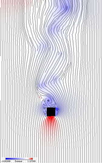 of Direct Numerical Simulation (DNS) of a flow around a block