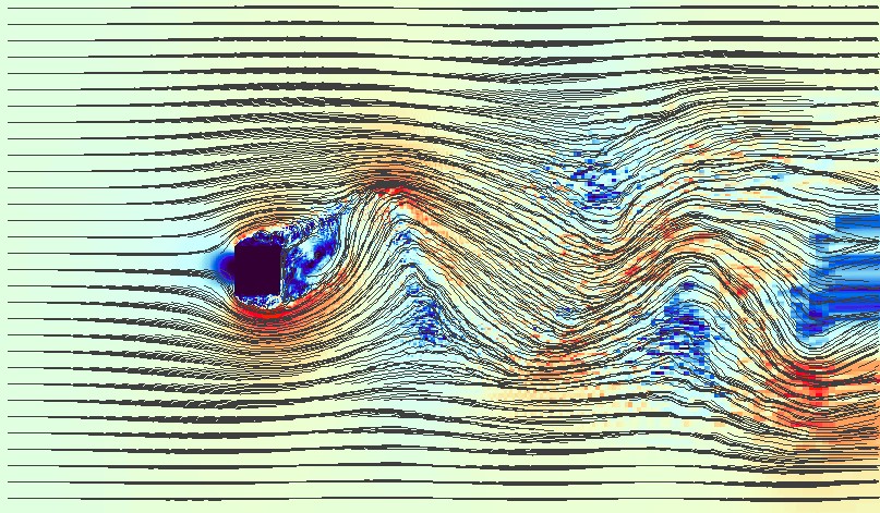 Fig: Adaptives [Jobard, Lefer] Stream Line Placement auf farbkodiertem