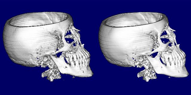 ![]() Figure 1: Threshold Rendering: Nearest Neighbour vs. Trilinear Filtering