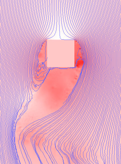 | User placed streamlines with velocity pins | User placed glyph mapped streamlines |