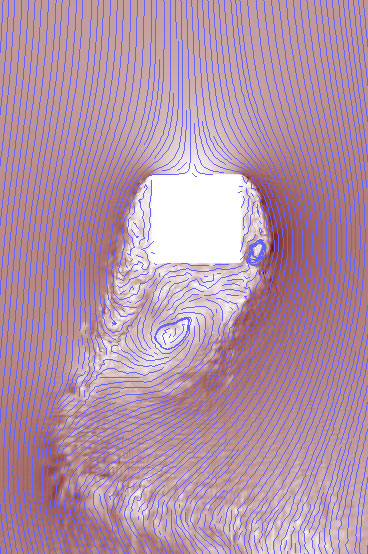 The visualization with simple streamlines has two disadvantages: on the one hand the streamlines do not cover large parts of the flow field, like the vortices, on the other hand they are sometimes too dense.