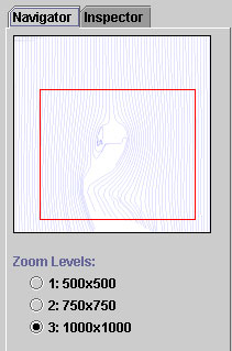 | The navigator shows the current view and allows to switch between three zoom levels, which are given by the pixel size of the canvas. | ||