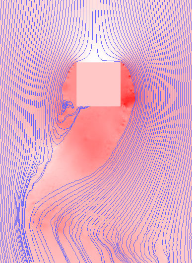 It seems that the streamline visualization is quite more expressive than the arrow plot approach, but streamlines lack of directional information. It is either possible to print the two methods over each other or to combine the advantages of both methods which results in glyph mapped streamlines. we use a tear drop glyph to visualize the flowing direction.