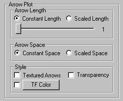 die Größe bzw. die Länge der Pfeile eingestellt werden. Die Pfeile selbst haben voneinander entweder einen konstanten Abstand oder einen von den Datensätzen abhängigen. Dies lässt sich in dem darunter befindendem Dialogfeld "Arrow Space" einrichten. |