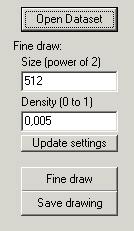 „FINE DRAW“ Knopf dient zum Rendering mit hoher Qualität. „SAVE DRAWING“ speichert das letzte fine rendering.