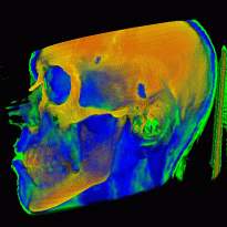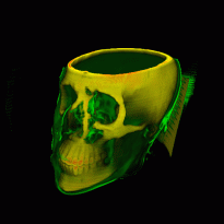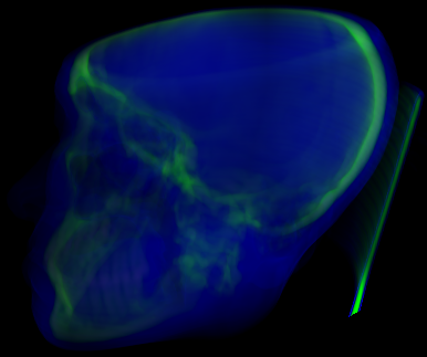 Mit Hilfe von X,x,Y,y,Z,z auf der Tastetur kann man Slices (Schnitte) in drei Hauptrichtungen erforschen.