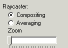 Raycaster arbeitet entweder mit einem compositing oder mit einem averaging Algoritmus. Zoom Slider dient selbsverständlich zum zoomen.