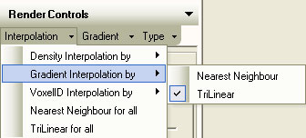 Der User hat die Möglichkeit, die Interpolation für die Voxel Density, den Gradienten und die Voxel ID zu bestimmen. Es steht jeweils Nearest Neighbour- und Trilinear Interpolation zu Auswahl: