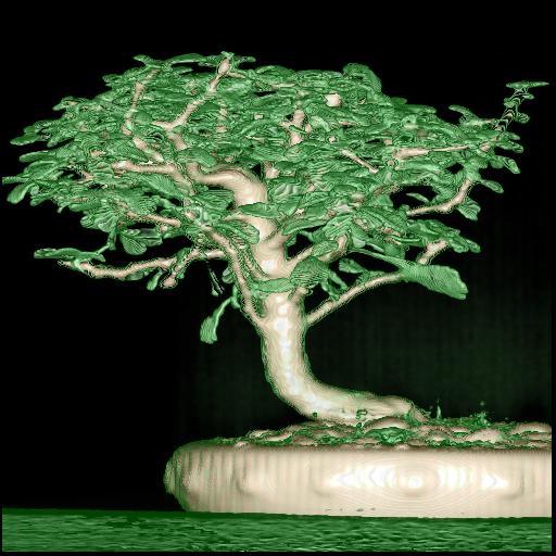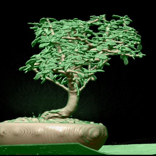 Bonsai mit trilinearer Interpolation und 4D Linear Regression aus verschiedenen Blickrichtungen.