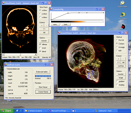 VolPack ist ein Softwareprogramm für die Visualisierung von Volumensdaten, wie sie beispielsweise bei Computertomographie-Scans erhoben werden. VolPack bietet zum Einen die Möglichkeit des "Slicing" (also der Visualisierung achsenparalleler Schnitte des Datensatzes in x-,y- und z-Richtung) und zum Anderen die direkte 3D-Volumensvisualisierung basierend auf dem RayCasting-Verfahren. Mit dieser Technik können halbtransparente 3D-Ansichten erstellt werden, die einen Einblick in die "innere Struktur" der Daten erlauben. Neben dem üblichen "Compositing" unterstützt VolPack noch einige weitere Visualisierungsmethoden ( "Average", "First-Hit", "MIP").