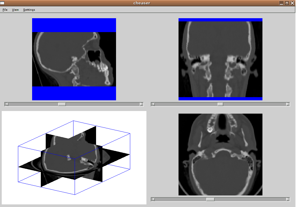 Nach der Auswahl wird automatisch der Slicer (schichtweise Darstellung der Daten in den 3 Hauptrichtungen) dargestellt.