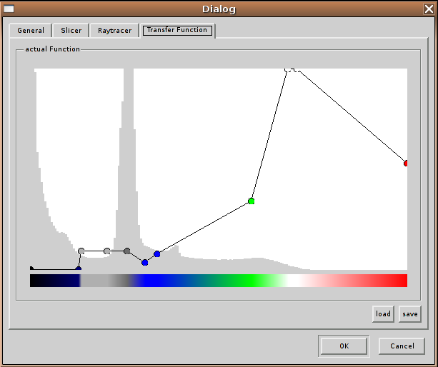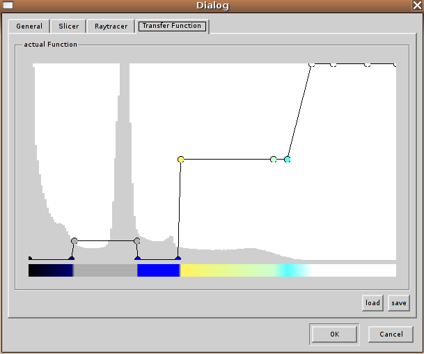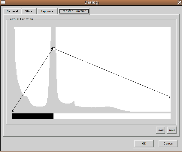 Bei Auswahl des Eintrages erscheint ein Dialog der in 4 Karteikarten eingeteilt ist: 'General', 'Slicer', 'Raytracer' und 'Transfer Function'.