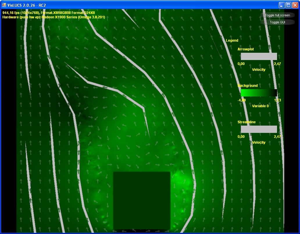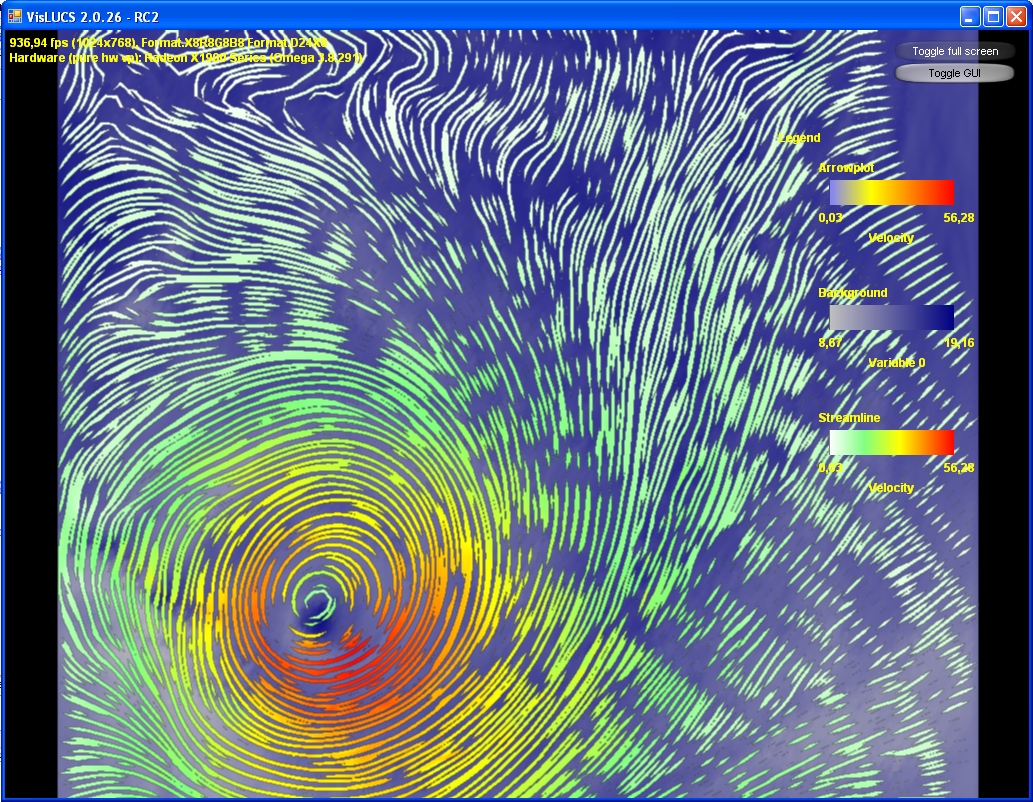 Beispiel 2 aus LU Visualisierung WS 2006/2007Beispielbilder![]() Abbildung 1: Beitrag zum VisLU-Contest ![]() Abbildung 2: Programmoberfläche ![]() Abbildung 3: Vollbilddarstellung mit ArrowPlot ![]() Abbildung 4:Vollbilddarstellung mit ArrowPlot (fixe Größe, anderer Stil) ![]() Abbildung 5:Vollbilddarstellung mit ArrowPlot, Streamlines(Euler) und Legende ![]() Abbildung 6:Vollbilddarstellung mit ArrowPlot, Streamlines(RungeKutta) und Legende ![]() Abbildung 7:Vollbilddarstellung mit ArrowPlot, Streamlines(RungeKutta) und Legende ![]() Abbildung 8:Vollbilddarstellung mit ArrowPlot, Streamlines(Euler) und Legende (anderer Datensatz) |