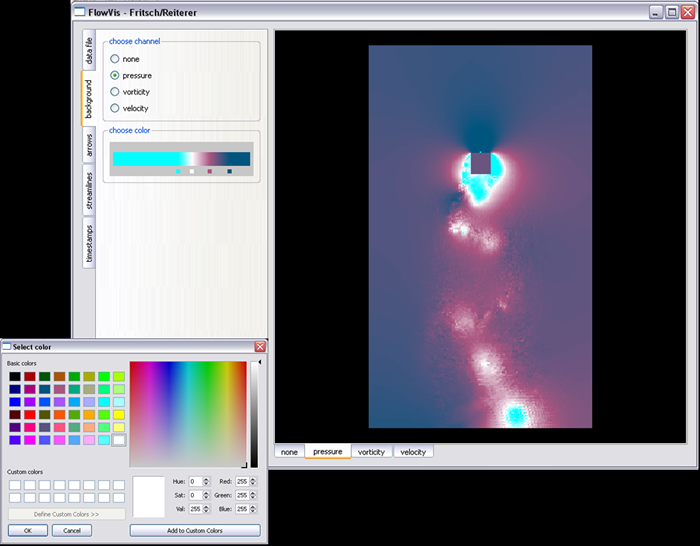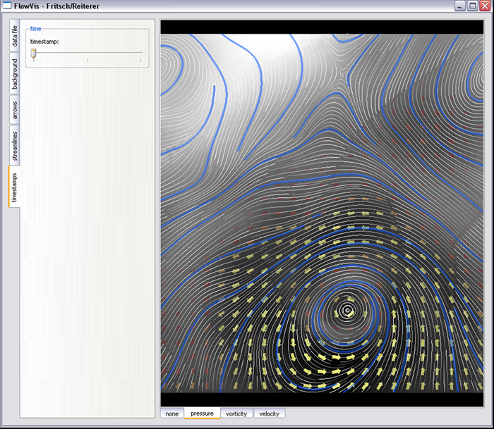 Als zweite Aufgabe haben wir ihm Rahmen der Visualisierung Laborübung im WS 2007/08 eine Anwendung zur Strömungsvisualiserung erstellt. Wir haben verschiedene Techniken wie Color Coding, Arrow Plots, Streamlines für eine übersichtliche Darstellung verwendet.