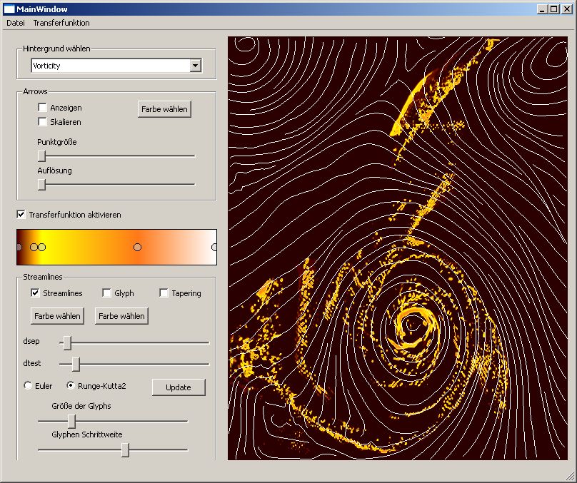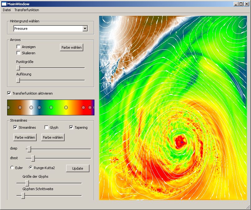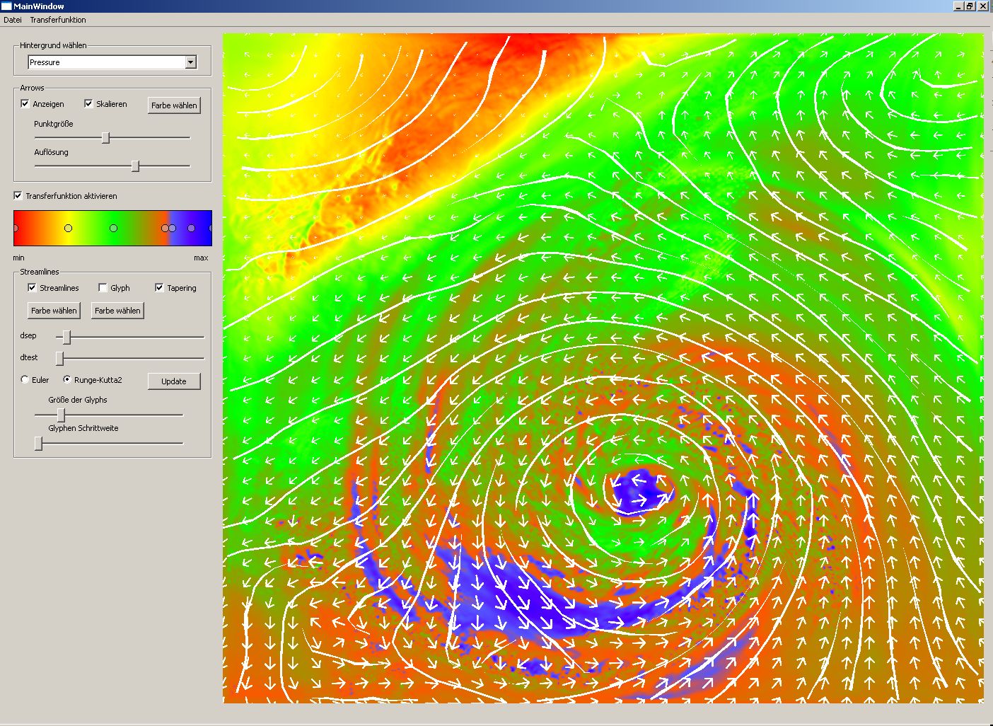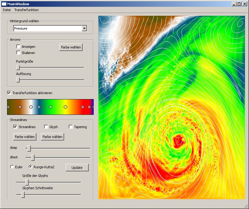 Hurrican, färbige Stromlinien mit Tapering, Color-Coding