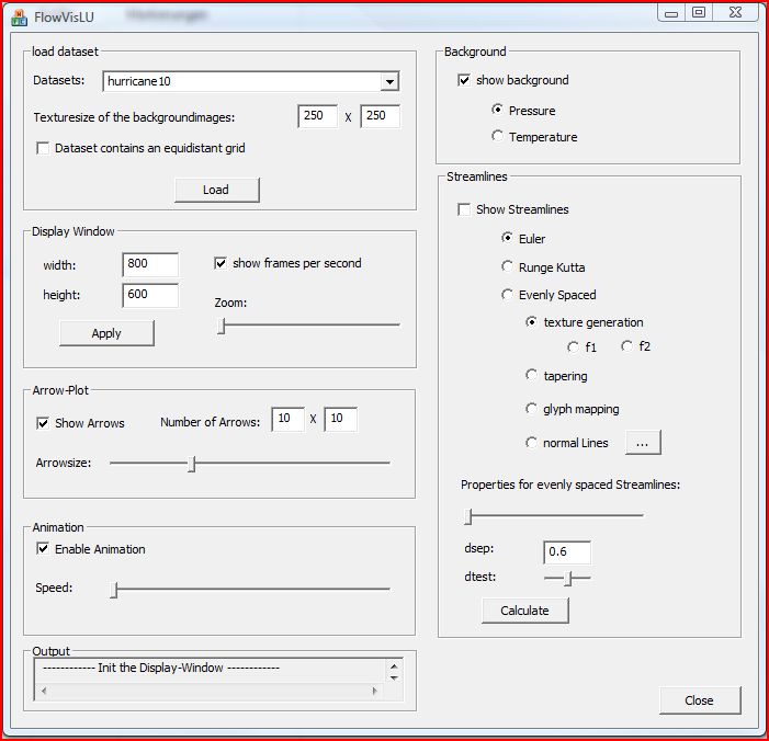 Mithilfe dieser Software, entwickelt im Zuge der Übung 'Visualisierung' an der TU Wien, ist es möglich, Strömungsdaten darzustellen. Im folgenden ist eine kurze Einführung in die von uns erstellte Applikation.