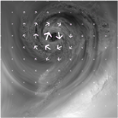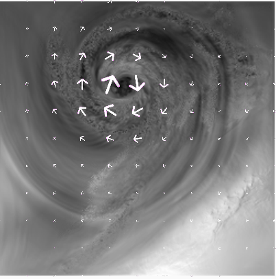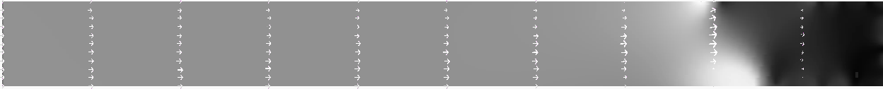 Der Frame "Arrow-Plot" bietet Option zur Darstellung der Pfeile in der Visualisierung. Mit Show-Arrows können diese aktiviert bzw. deaktkiviert werden. Die "Number of Arrows" gibt an, wieviele Arrows in x- bzw. y-Richtung gezeichnet werden sollen. Der Slider "Arrowsize" bietet die Möglichkeit die Grösse der Pfeile zu manipulieren.