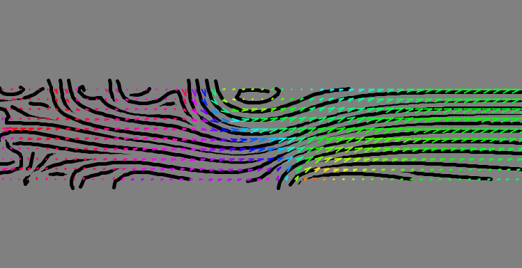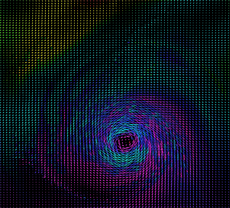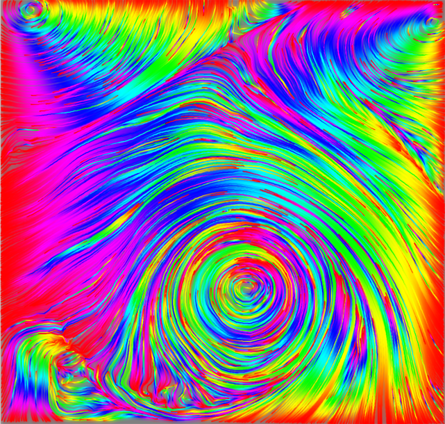 ![]() Strömung in einer Rohrleitung mit Pfeilen, farblicher Druckdarstellung und Strömungslinien ![]() Wirbelsturm ![]() Wirbelsturm (Texturdarstellung der Strömungslinien) ![]() Strömungslinien mit Glyphen |