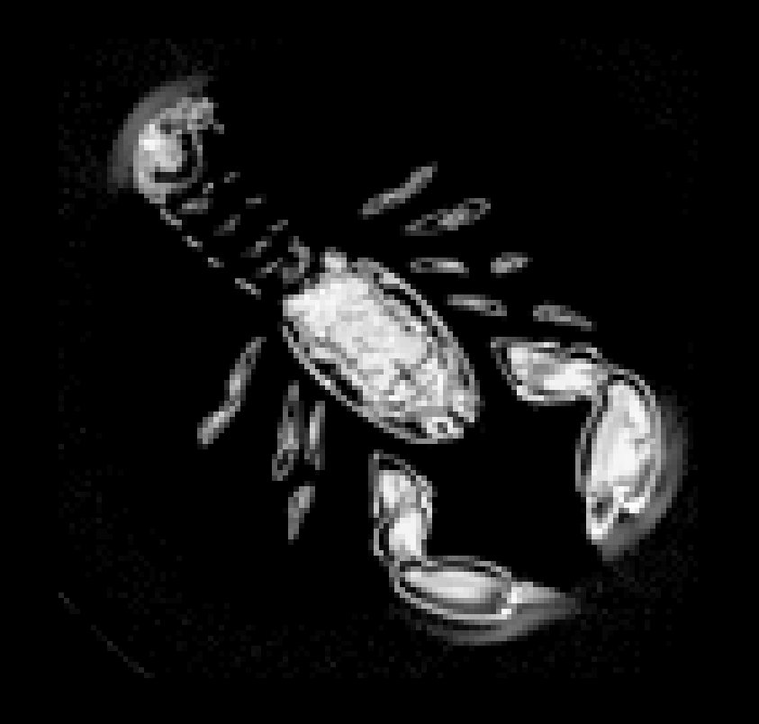 Slice 13 in Z-Richtung des Lobsters: Ohne Transferfunktion mit trilinearer Interpolation (links), mit nearest neighbour Interpolation (mitte) und mit Transferfunktion und trilinearer Interpolation (rechts).