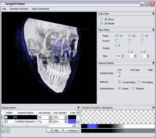 Programm, das im Zuge der LU Visualisierung entstanden ist. Ziel das Programmes ist es Volumensdatensätzte, wie sie zum Beispiel bei CT Aufnamhem entstehen, darzustellen. Dabei ist es sowohl möglich einzelne Schichten des Volumens darzustellen das komplette Modell mittels Raycasting in 3D.