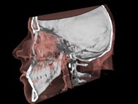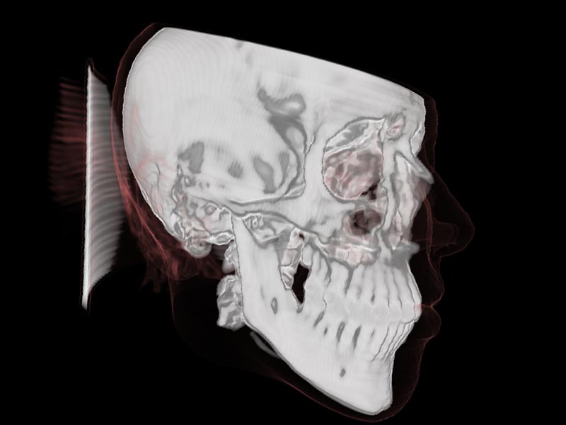 ![]() Der Schädel mit Halbtransparenter Haut sowie der Knochen dahinter |
