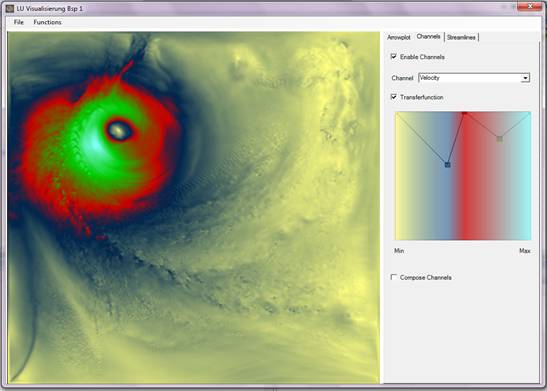 Im Rahmen des 2. Beispiels der LU Visualisierung wurde ein Programm zur Visualisierung von Strömungsdaten entwickelt. |