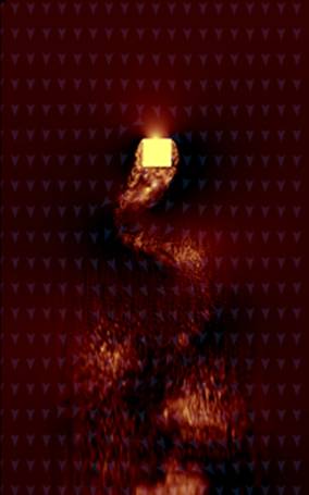 Im Arrow Plot Tab kann man die Stärke des Strömungsfeldes durch Skalierung und Farbkodierung der Pfeile darstellen, die Dichte und die Transparenz der Pfeile variieren.