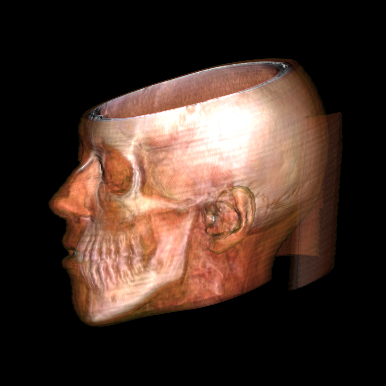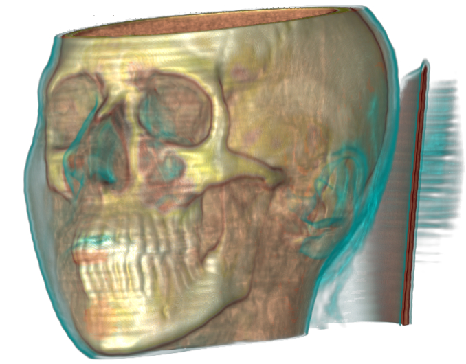 CT-scan von einem Weihnachtsgeschenk. Die Größe des Volumens ist x=246 y=246 z=221. Das Innere des Weihnachtsgeschenks darf mit geeigneten Volumerenderings ausnahmsweise auch schon vor Weihnachten angeschaut werden. |