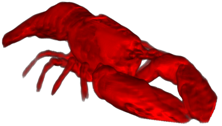 CT-scan von einem Hummer. Der Lobster Datensatz hat folgende Größe: x=120, y=120, z=34. Auf Grund seiner geringen Größe eignet sich der Lobster Datensatz sehr gut zum Testen! |