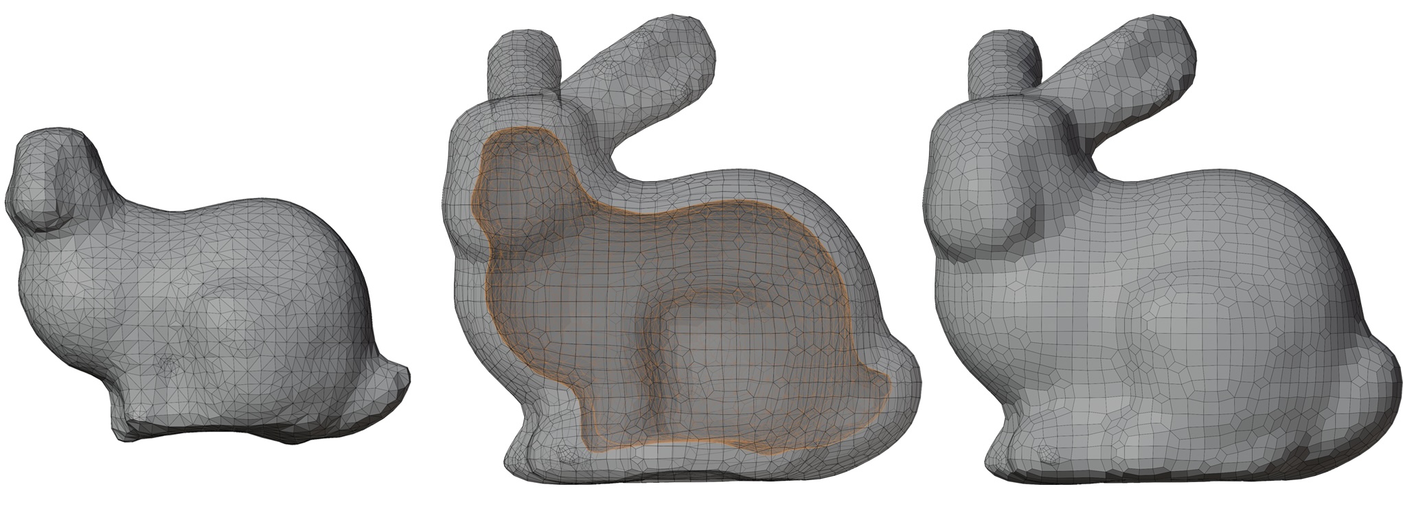 To achieve a smooth distribution of offsets across the input mesh, the method introduces a Radial Basis Function interpolation combined with Dijkstra-based distance propagation. The method supports the extraction of both inner and outer offset components through an octree data structure and a modified Dual Contouring algorithm adapted for non-uniform distances, ensuring accurate and manifold surface generation.