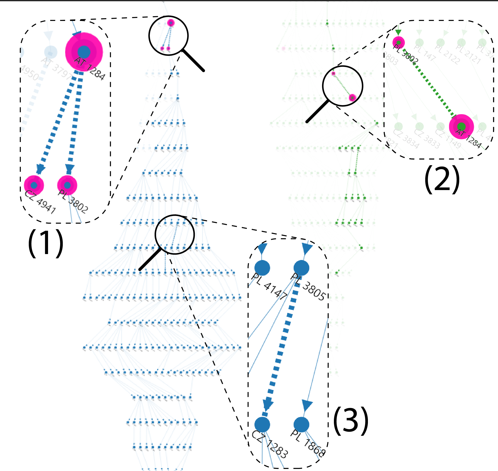We are specifically interested in finding effective ways to facilitate the visual comparison of 1-to-Many (comparing a baseline against multiple instances) or Many-to-Many (comparing all-to-all) networks, moving beyond the more straightforward 1-to-1 comparison. This additional layer of complexity requires meaningful visual encoding and interaction techniques to reveal insightful information within the dataset effectively.