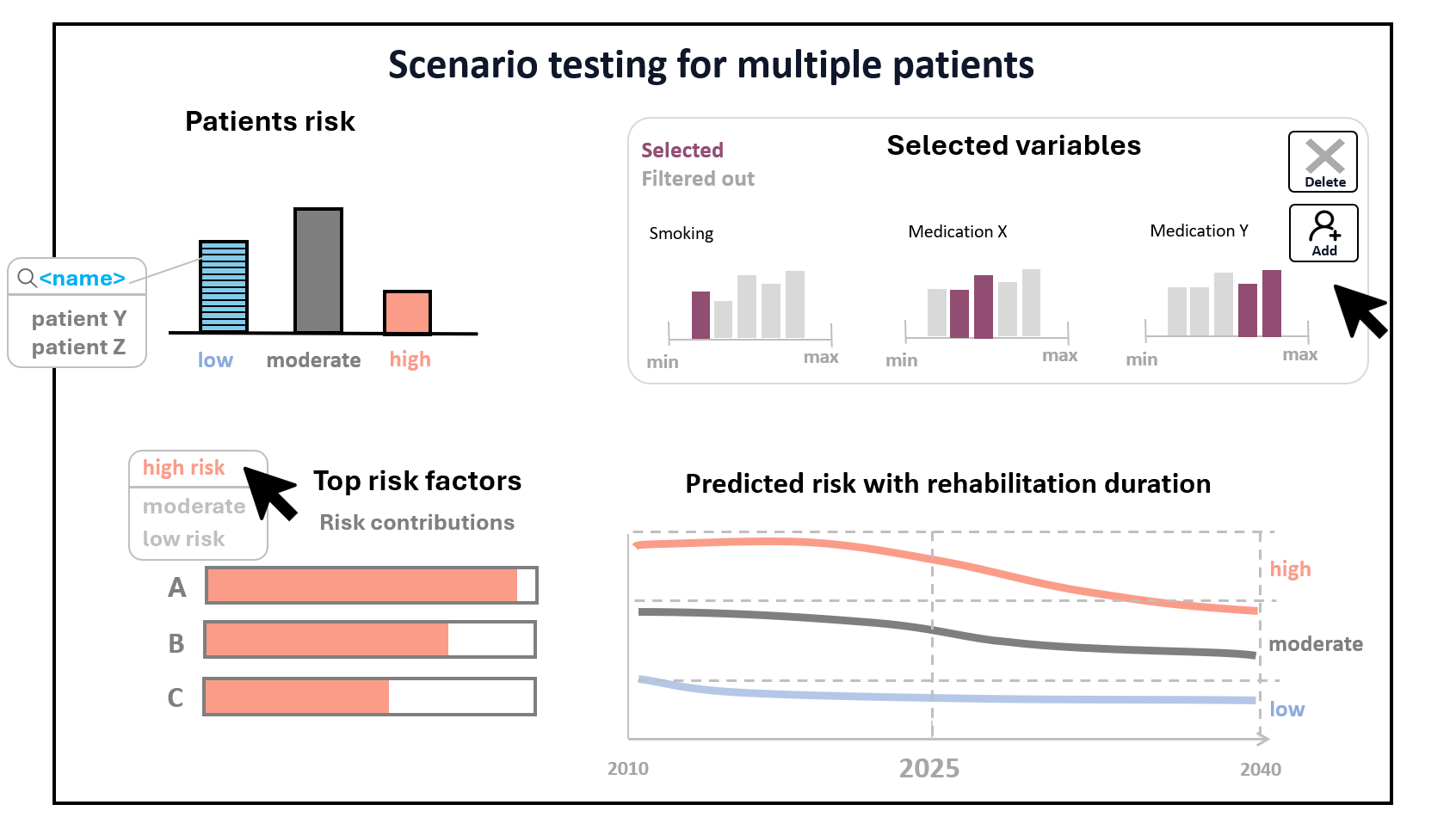 This project aims to support patients with stroke risk and clinicians in the diagnosis and management of the stroke disease. The goal is to develop a web application that provides decision support to clinicians, and simplified views to patients to help them to understand their risk and aid their recovery process. A first design draft exists that can be used as basis for brainstorming [2].