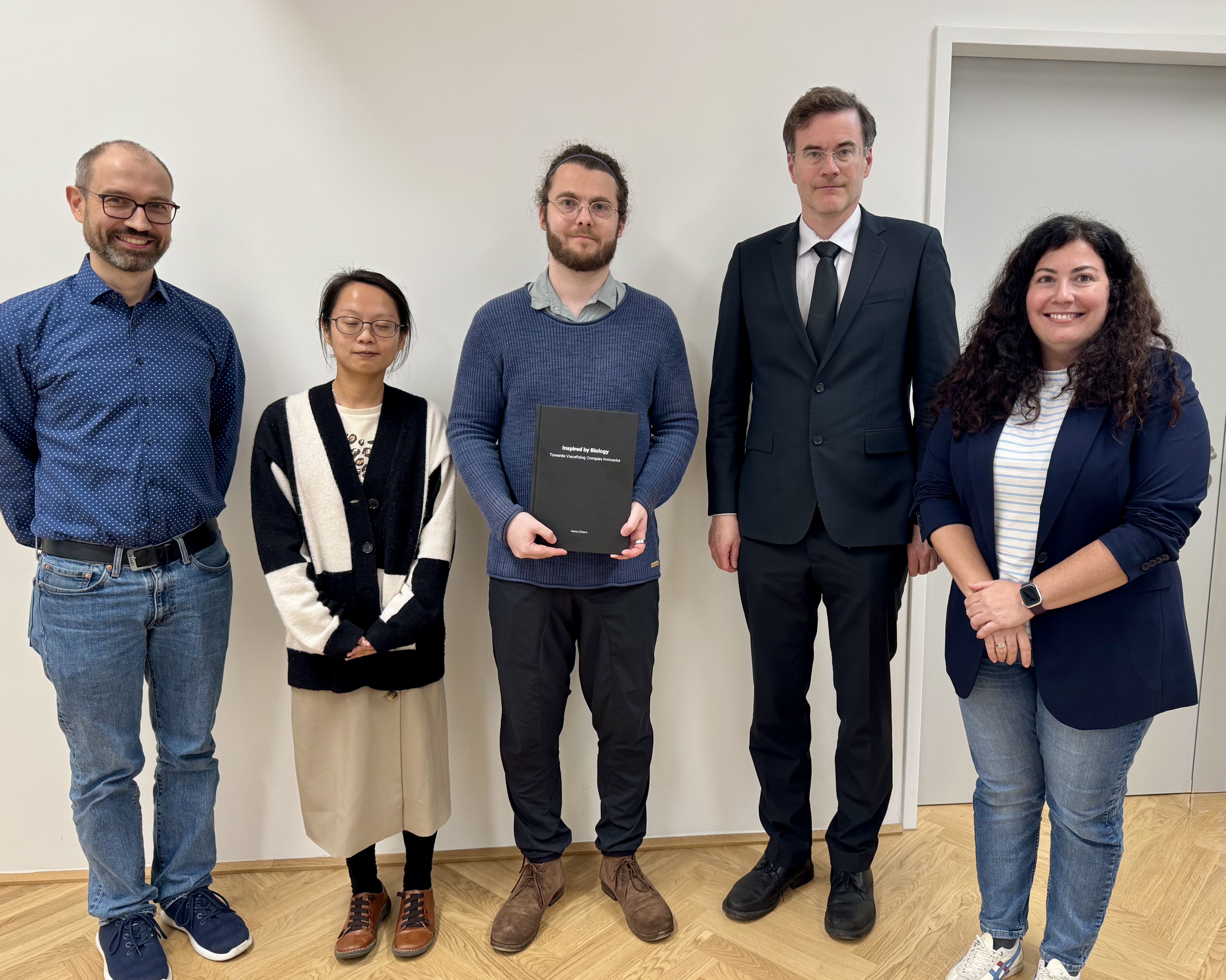 We congratulate Dr. techn. Henry Ehlers for successfully defending his PhD on "Inspired by Biology: Towards Visualizing Complex Networks" on September 18, 2025. The defense committee consisted of Prof.Dr. Andreas Kerren (Linköping University; online), Prof. Daniel Archambault, PhD (Newcastle University), Prof.Dr. Tobias Schreck (Graz University of Technology; online), Univ.-Prof.Dr. Martin Nöllenburg (TU Wien), and the supervisors Associate Prof. Dr. Renata G. Raidou (TU Wien) and FH-Prof. Dr. Hsiang-Yun Wu (FH St. Poelten).
